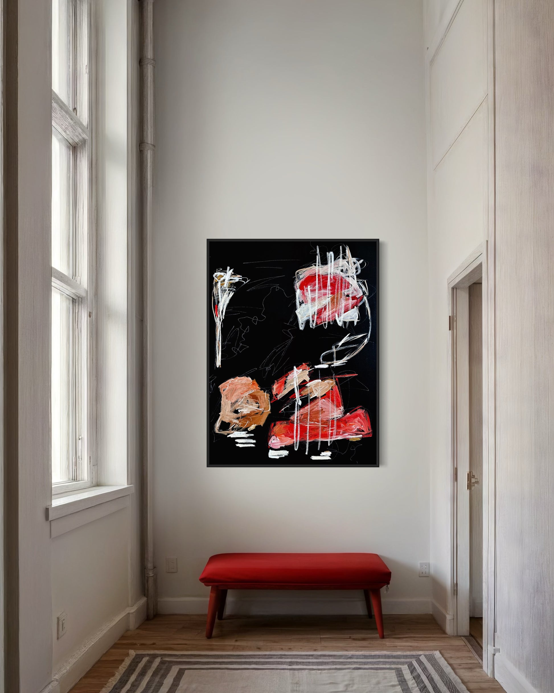 Print of an original abstract painting. Black and bold design that will make your walls pop.