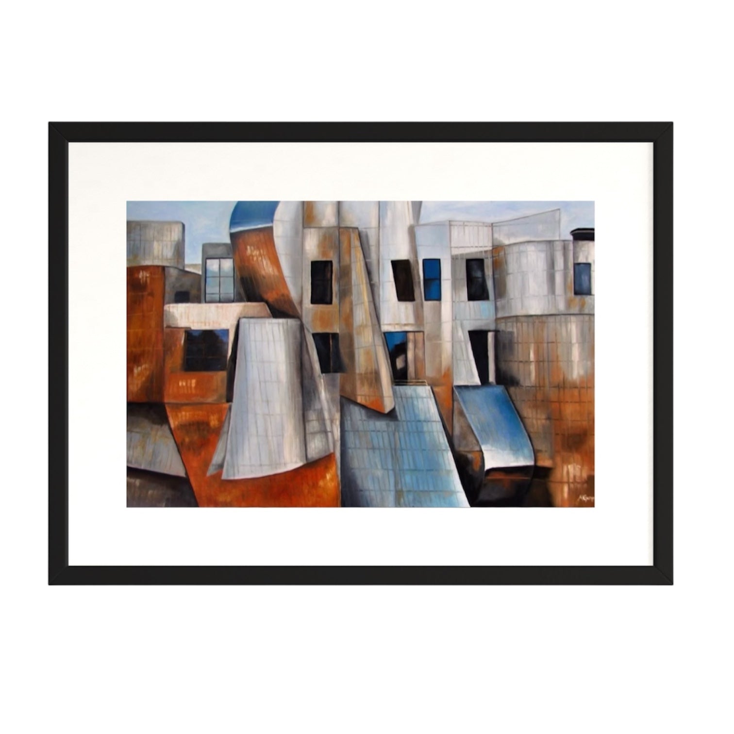 5x7 0.875w x 0.875h Black Framed Fine Art Print of an original oil painting of the Weisman Art Museum at the University of Minnesota Twin Cities campus in Minneapolis by Megan Gonyo.